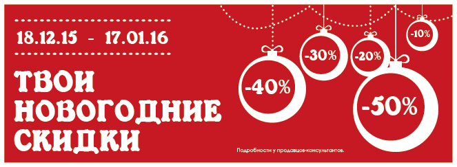Акция «Твои Новогодние скидки» проходит с 18 декабря 2015 года до 17 января 2016 года